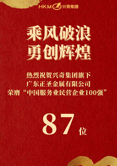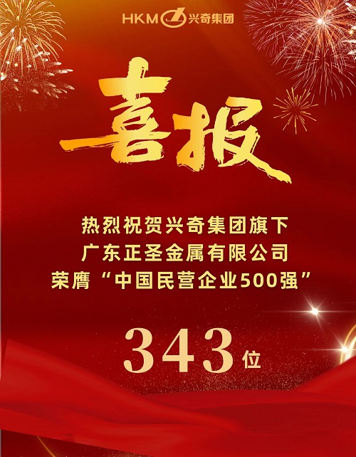 2022年9月7日,全國(guó)工商聯(lián)發(fā)布2022中國(guó)民營(yíng)企業(yè)500強(qiáng)榜單。興奇集團(tuán)旗下廣東正圣金屬有限公司(下稱“正圣金屬”)榮膺“2022中國(guó)民營(yíng)企業(yè)500強(qiáng)”榜單第 343 位、“2022中國(guó)服務(wù)業(yè)民營(yíng)企業(yè)100強(qiáng)”榜單第87位。