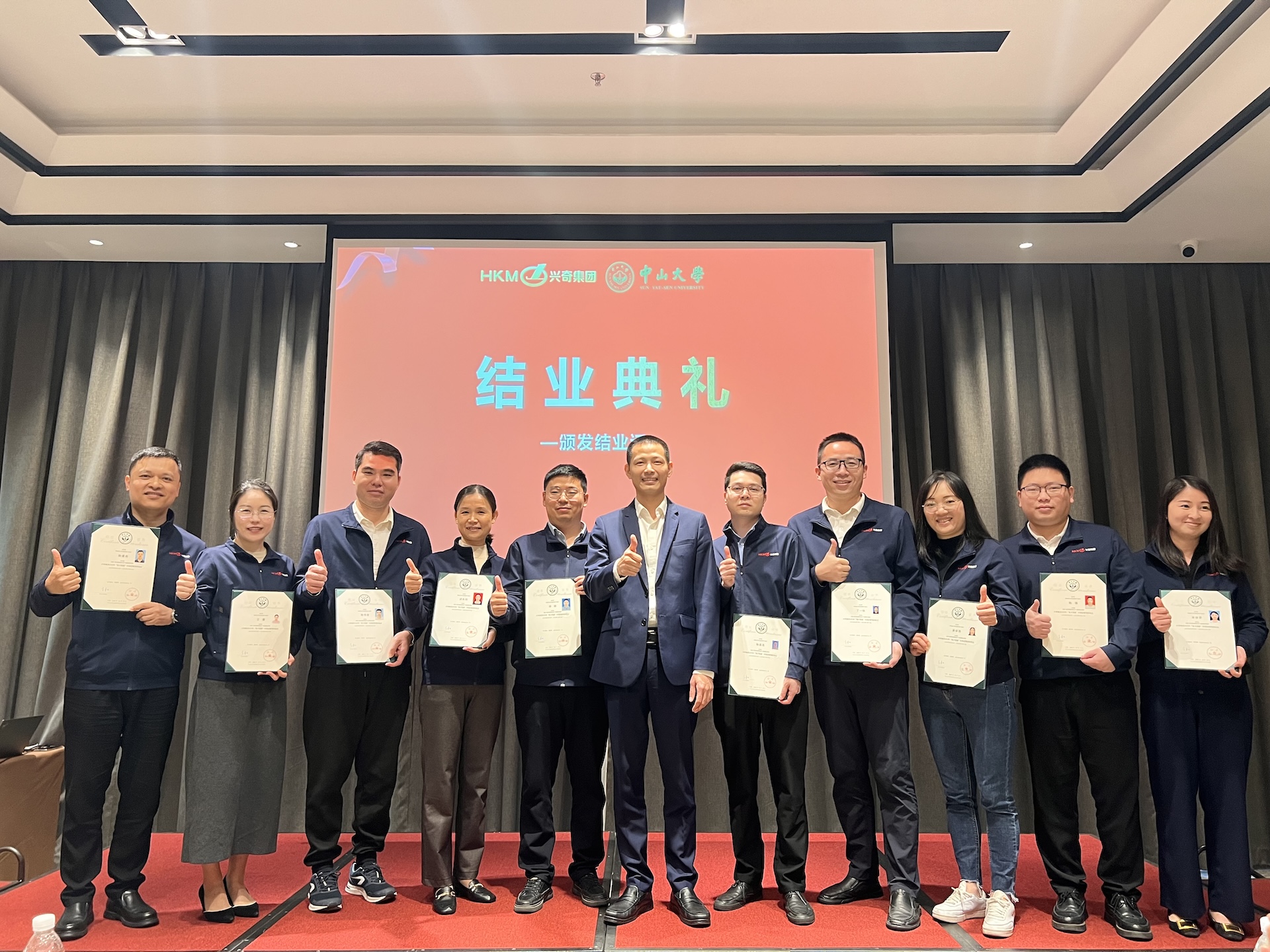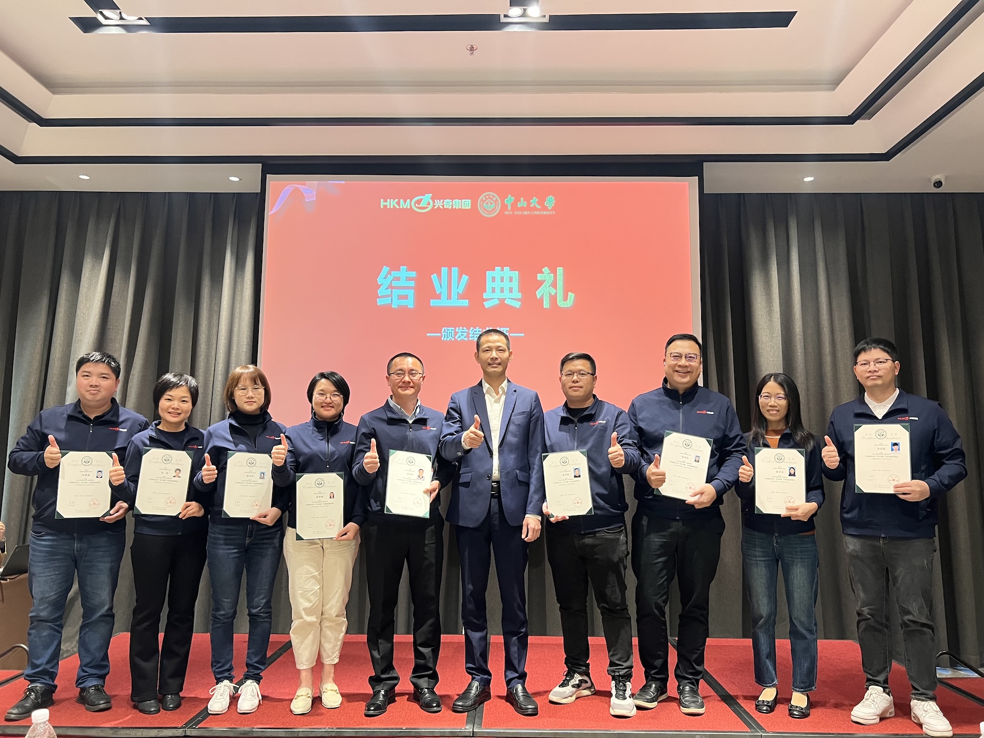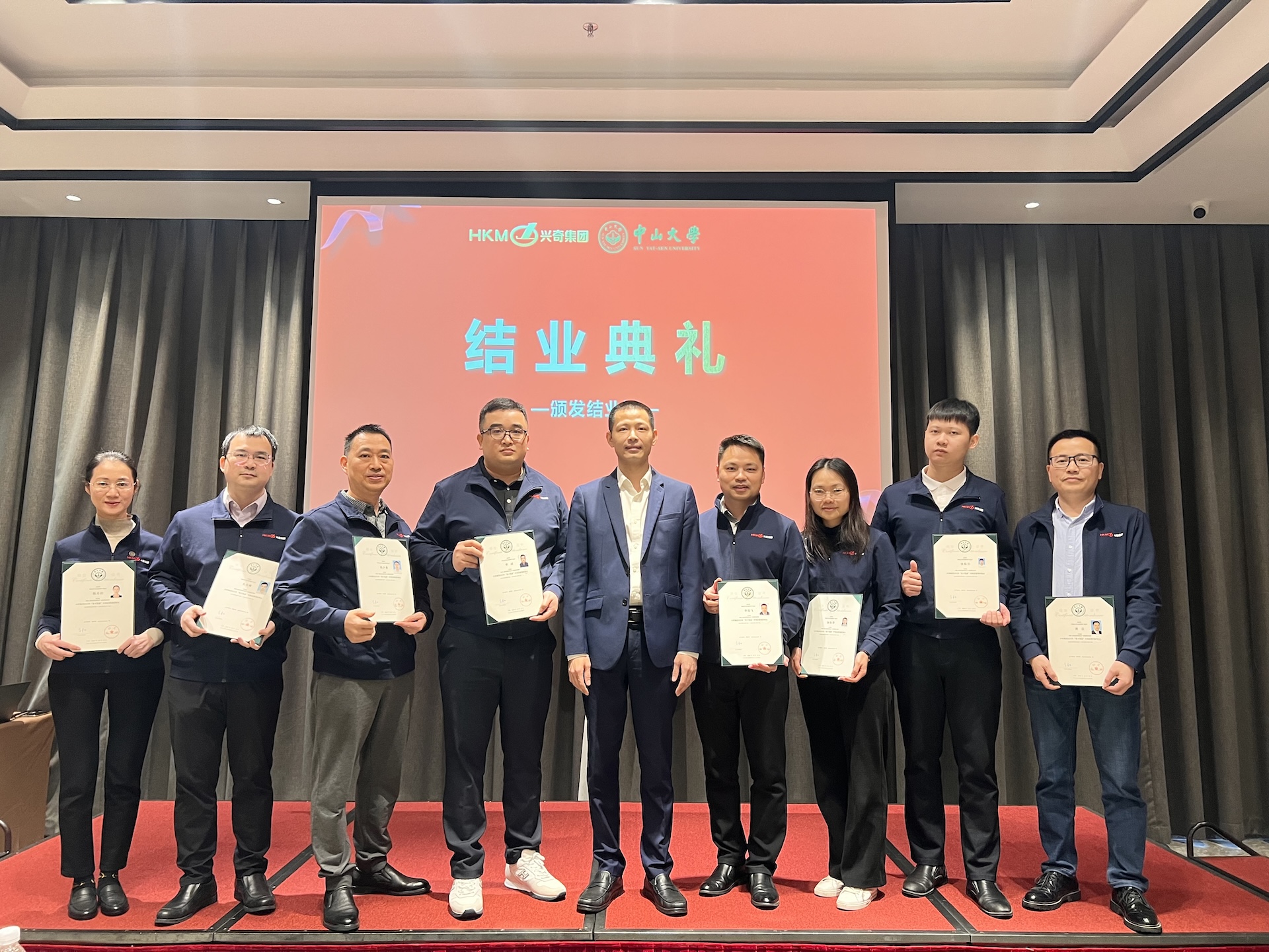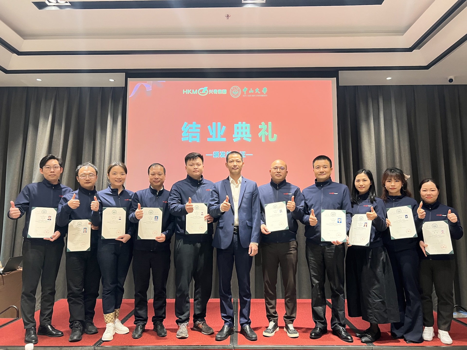 中山大學(xué)繼續(xù)教育學(xué)院企業(yè)管理培訓(xùn)中心副主任郭競(jìng)首先發(fā)表結(jié)業(yè)致辭,對(duì)研修班學(xué)員的順利結(jié)業(yè)表示祝賀,并鼓勵(lì)他們將所學(xué)知識(shí)應(yīng)用于實(shí)際工作,為興奇集團(tuán)的發(fā)展貢獻(xiàn)力量。隨后,興奇集團(tuán)常務(wù)副董事長(zhǎng)陳湛枝致辭中強(qiáng)調(diào),企業(yè)的高質(zhì)量發(fā)展需落實(shí)到實(shí)際行動(dòng),將理論與實(shí)踐相結(jié)合,不斷提升自我,推動(dòng)企業(yè)向前發(fā)展。